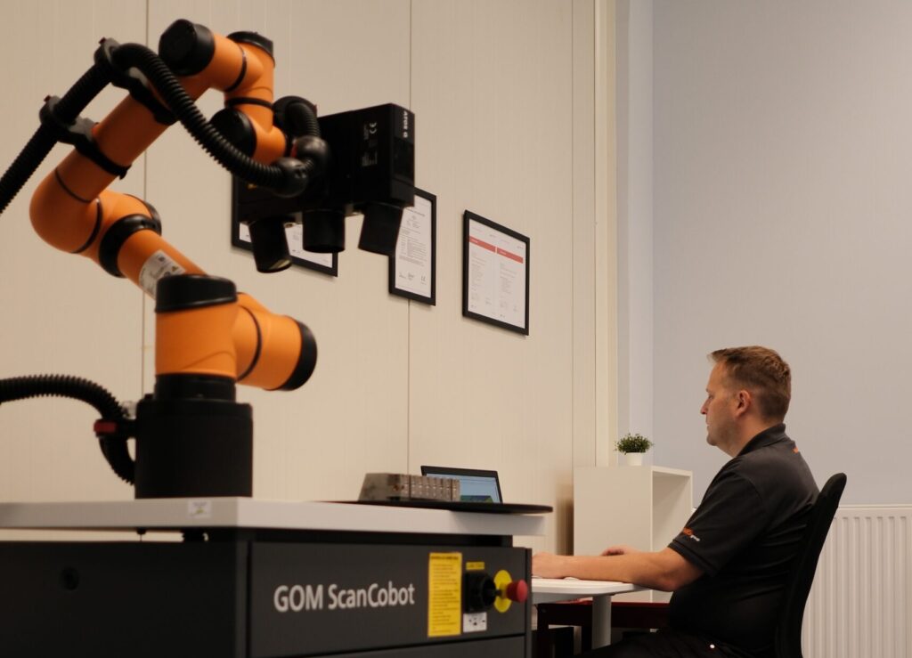Tvrtka GOM GmbH vodeći je proizvođač 3D mjernih sustava uključujući prijenosni GOM ScanCobot. Ovaj mjerni sustav sastoji se od ATOS optičkog 3D skenera, kolaborativnog robota i automatiziranog rotacijskog stola. Skener se nalazi na robotskoj ruci koja ga pomiče po sobi, dok rotacijski stol pruža dodatnu pomoć.